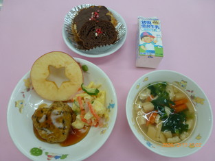 【おやつ】クリスマスケーキ・牛乳