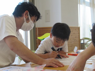 夕涼み会③ おうちの人と一緒に盆踊りを踊りました