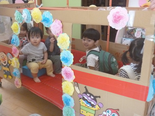 お散歩遠足②手作りバスで遠足ごっこ「出発しま〜す」