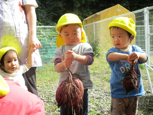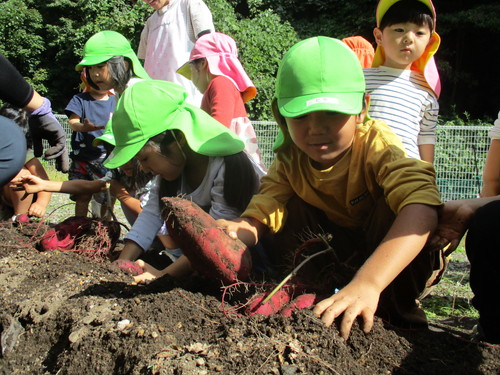 芋ほり②「みてみて!こんなに大きいのとれたよ」