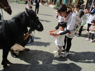 馬っこパーク乗馬体験③エサやり体験でにんじんをあげました